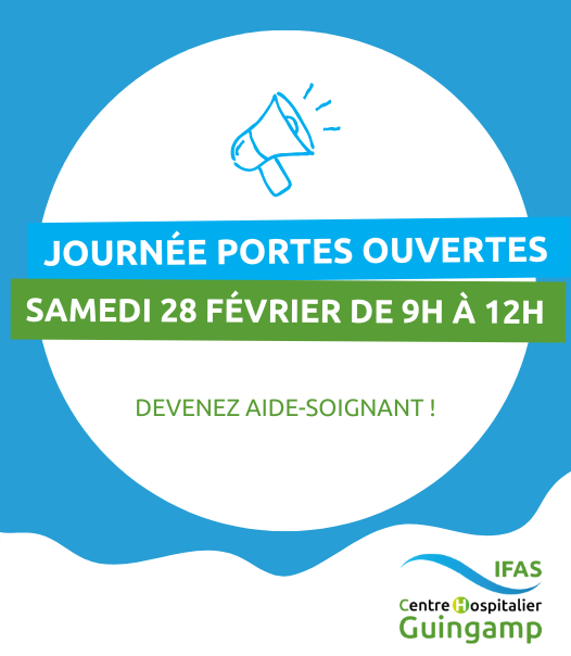 Venez découvrir l’Institut de Formation des Aides-Soignants (IFAS) de Guingamp lors de sa journée Portes Ouvertes, le samedi 28 février 2026, de 9h à 12h !